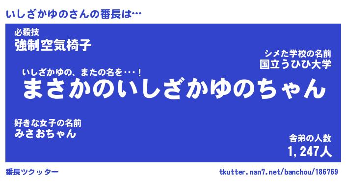 | ヒーロー風カッコイイあだ名 | 『スーパーイシザカユノ』『銀牙騎士イシ』 |