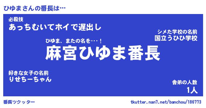 | ファンタジー風あだ名 | 『ヒユフェル』『エターナルヒユマー』 |