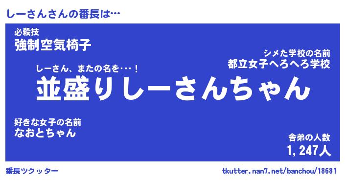 | ピコ太郎風あだ名 | 『シコ次郎』『ピシ三郎』『シー六郎』 |
