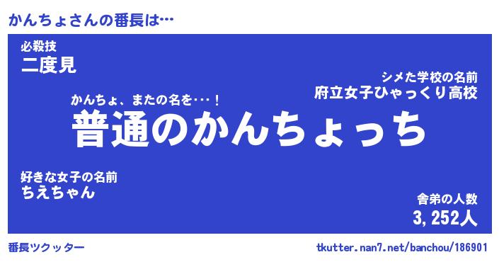 | 意味不明あだ名 | 『ペロリンかんちょ』『永久保存かんちょ』 |