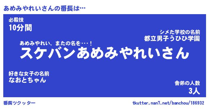 | 肩書あだ名 | 『あめみやれい社長』『あめみやれい校長』 |