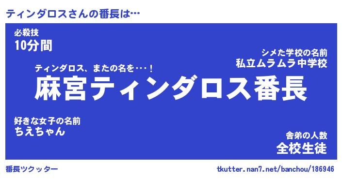 | ヒーロー風カッコイイあだ名 | 『スーパーティンダロス』『魔戒騎士ティ』 |