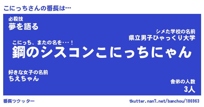| 意味不明あだ名 | 『ペロリンこにっち』『永久保存こにっち』 |