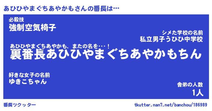 | 肩書あだ名 | 『あひひやまぐちあやかも店長』 |