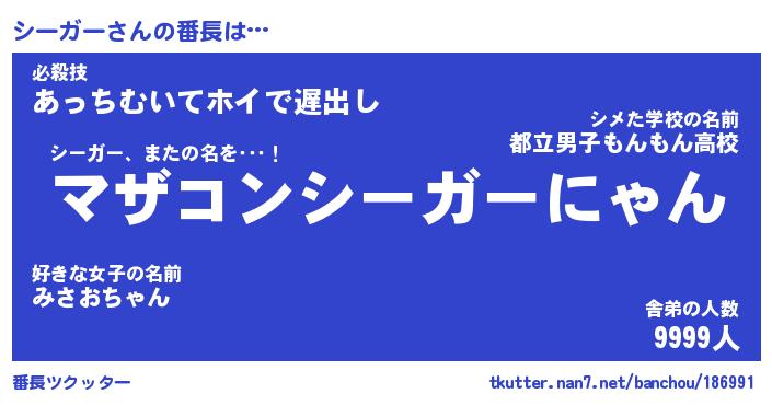 | 肩書あだ名 | 『シーガー店長』『シーガー大統領』 |