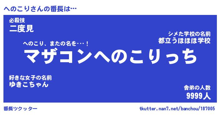 | 意味不明あだ名 | 『ペロリンへのこり』『永久保存へのこり』 |