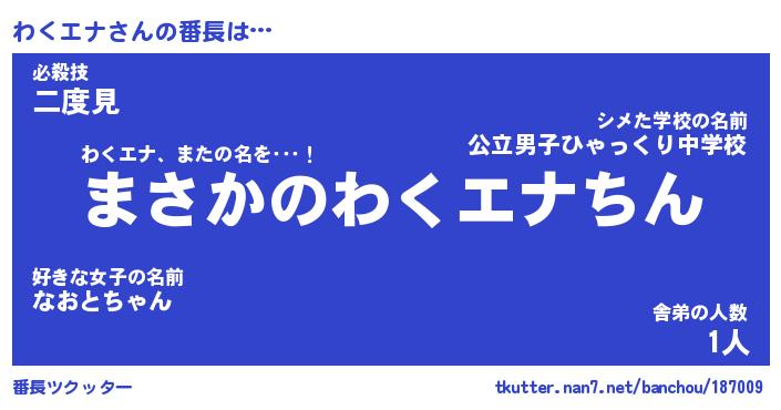 | 伝説のあだ名 | 『伝説のスナイパーわくエナ』 |