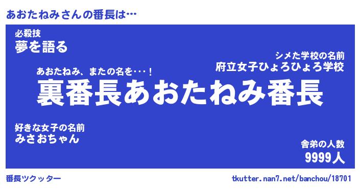 | 肩書あだ名 | 『あおたねみ店長』『あおたねみ大統領』 |