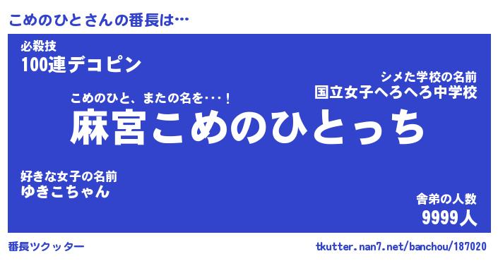 | ヒーロー風カッコイイあだ名 | 『スーパーコメノヒト』『天弓騎士コメ』 |