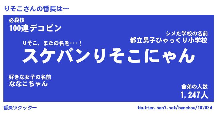 | 意味不明あだ名 | 『ペロリンりそこ』『りそこフォーエバー』 |