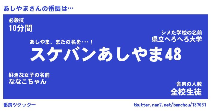 | ファンタジー風あだ名 | 『アシフェル』『エターナルアシヤマー』 |
