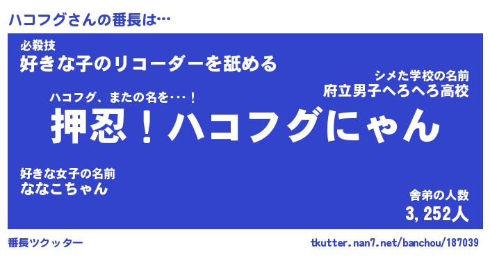 | ヒーロー風カッコイイあだ名 | 『スーパーハコフグ』『幻影騎士ハコ』 |