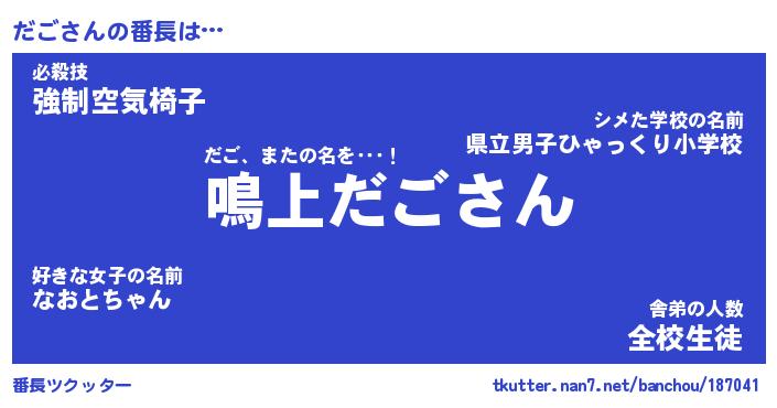 | ヒーロー風カッコイイあだ名 | 『スーパーダゴ』『ウルトラだごマン』 |