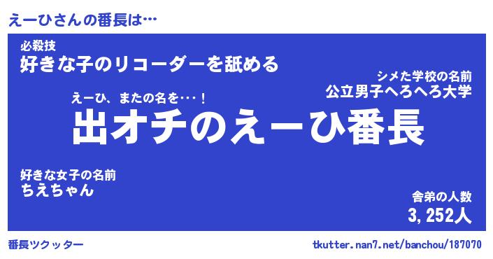 | 肩書あだ名 | 『えーひ店長』『えーひ大統領』 |