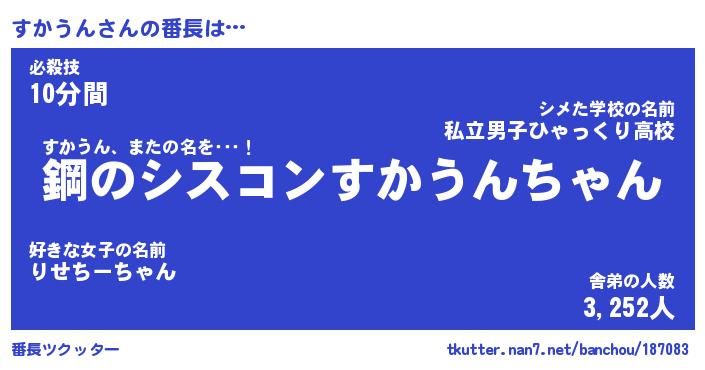 | 肩書あだ名 | 『すかうん店長』『すかうん総理大臣』 |