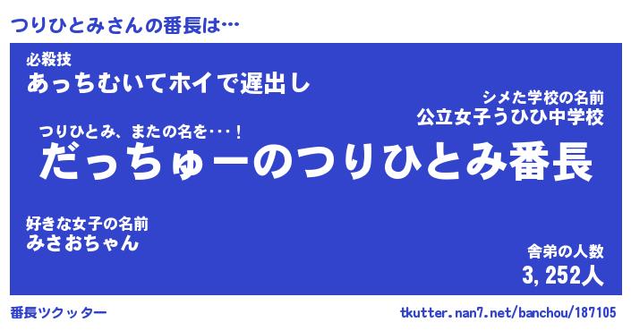 | 肩書あだ名 | 『つりひとみ店長』『つりひとみ国家主席』 |