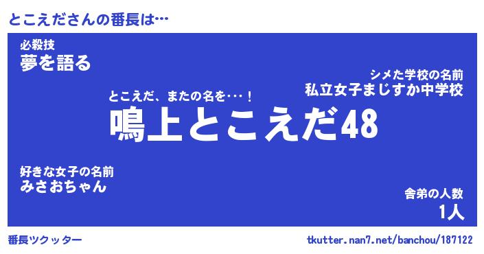 | ヘコむあだ名 | 『とこにゅー』『牛乳』『とこお』 |