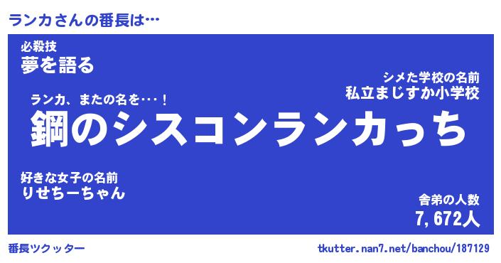| 意味不明あだ名 | 『ペロリンランカ』『ランカフォーエバー』 |