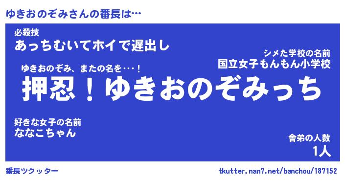| ヒーロー風カッコイイあだ名 | 『スーパーユキオノゾミ』『天弓騎士ユキ』 |