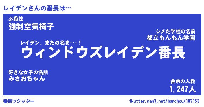 | 意味不明あだ名 | 『ペロリンレイデン』『永久保存レイデン』 |