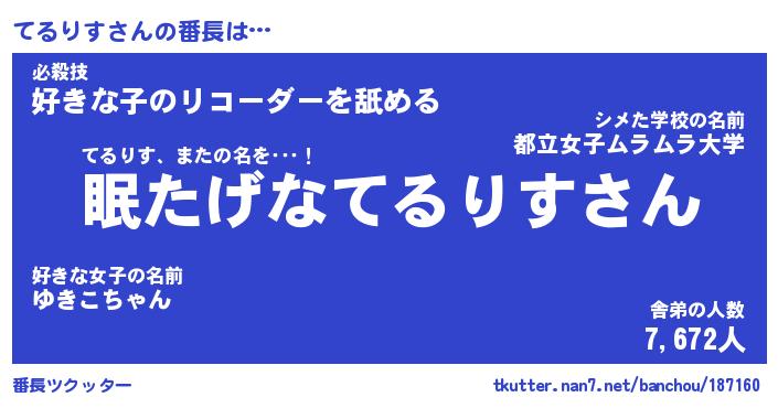 | 意味不明あだ名 | 『ペロリンてるりす』『永久保存てるりす』 |