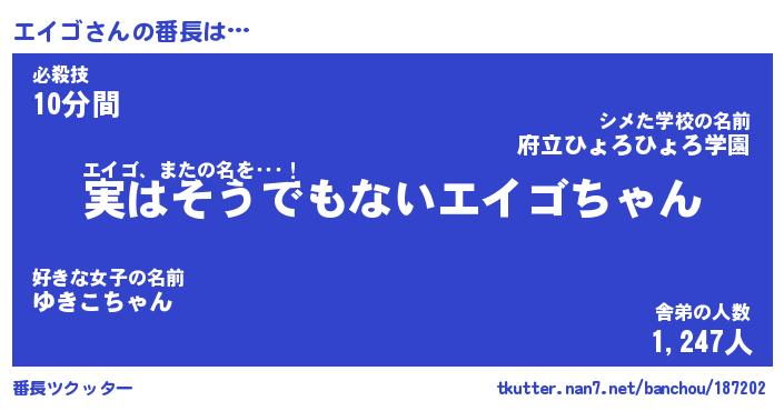 | ヘコむあだ名 | 『エイにー』『牛乳』『エイ太郎』 |