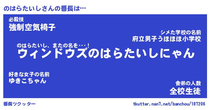 | 肩書あだ名 | 『のはらたいしCEO』『のはらたいし班長』 |