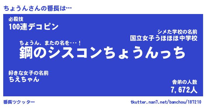 | 欧米人風あだ名 | 『マイケルちょうん』『ウサインちょうん』 |