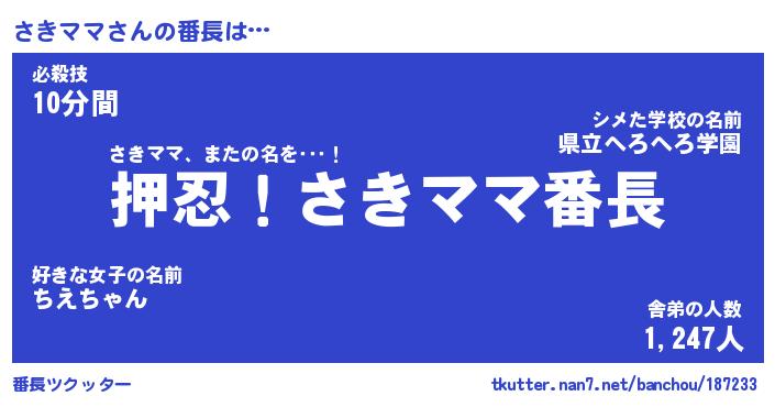 | ヒーロー風カッコイイあだ名 | 『スーパーサキママ』『銀牙騎士サキ』 |