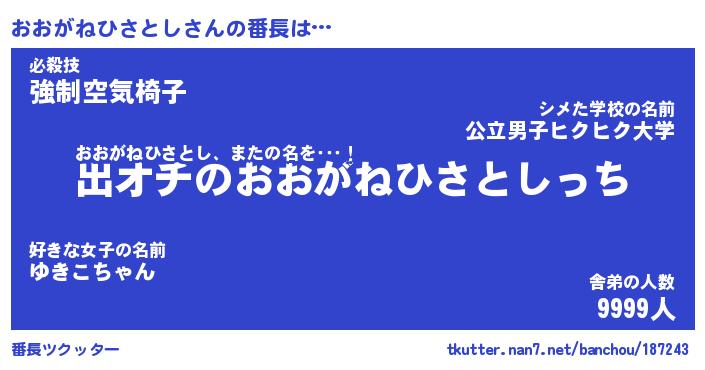 | 肩書あだ名 | 『おおがねひさとし店長』 |
