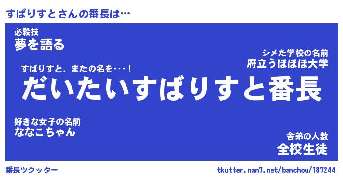| 肩書あだ名 | 『すばりすと店長』『すばりすと大統領』 |