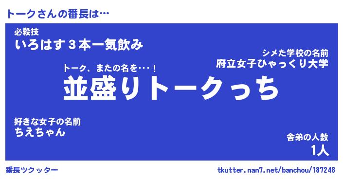 | 男性向けラノベタイトル風あだ名 | 『トークの憂鬱』 |