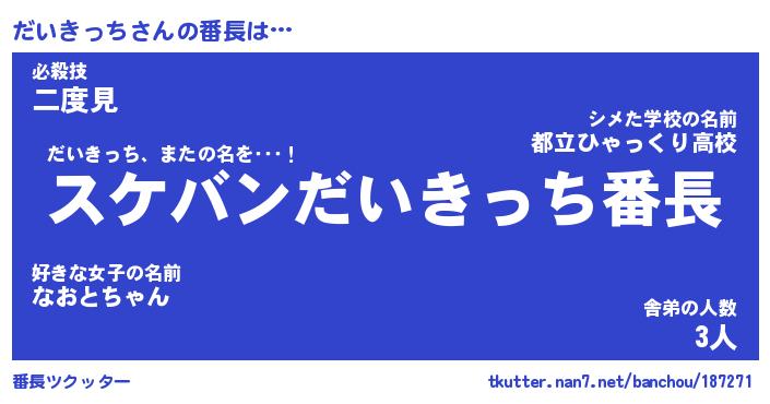 | 肩書あだ名 | 『だいきっち店長』『だいきっち総理大臣』 |