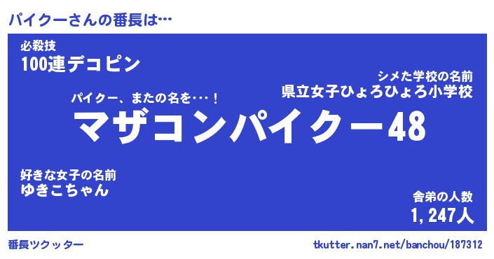| 肩書あだ名 | 『パイクー社長』『パイクー総理大臣』 |