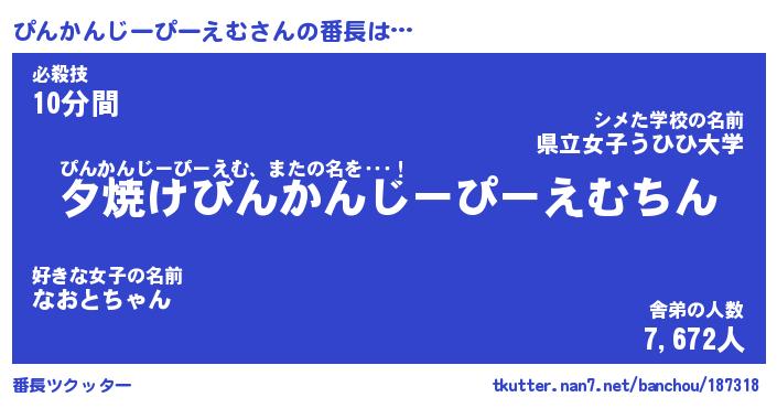 | ヘコむあだ名 | 『ぴんにゅー』『なまこ酢』 |