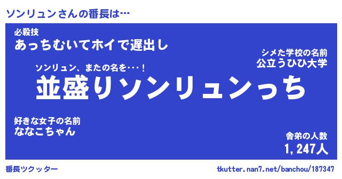 | ポケモン風あだ名 | 『ソンチュウ』『ソンリダネ』 |