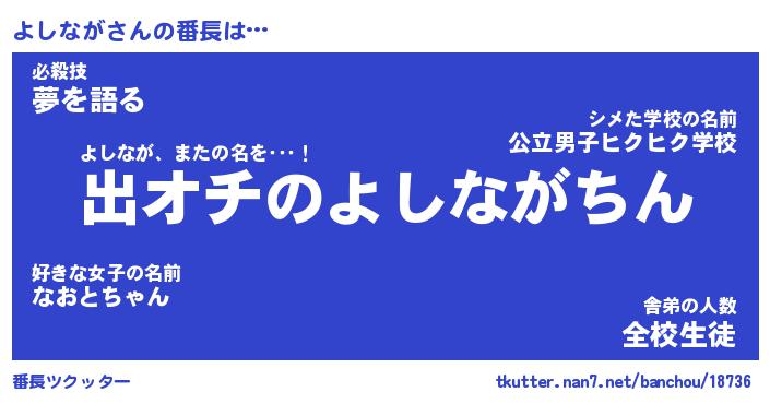 | ポケモン風あだ名 | 『ヨシチュウ』『ヨシナダネ』 |