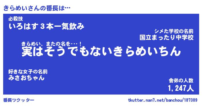 | 意味不明あだ名 | 『ペロリンきらめい』『永久保存きらめい』 |