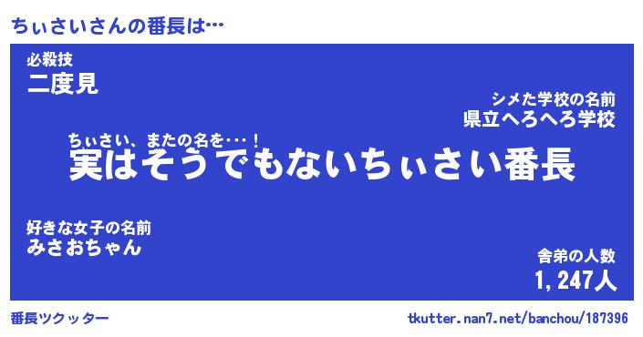 | ヒーロー風カッコイイあだ名 | 『スーパーチィサイ』『銀牙騎士チィ』 |