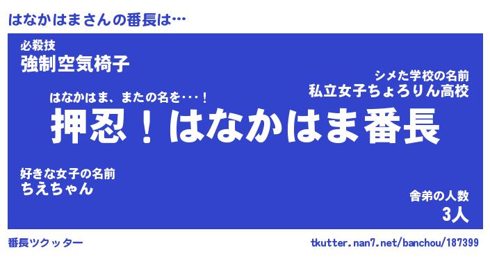 | 伝説のあだ名 | 『封印されしスナイパーはなかはま』 |