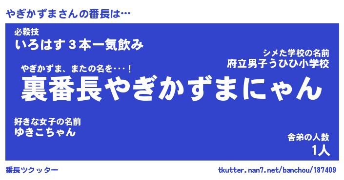 | ヘコむあだ名 | 『やぎにー』『なまこ酢』『やぎ太郎』 |