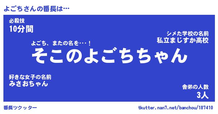 | ファンタジー風あだ名 | 『ヨゴフェル』『エターナルヨゴチー』 |