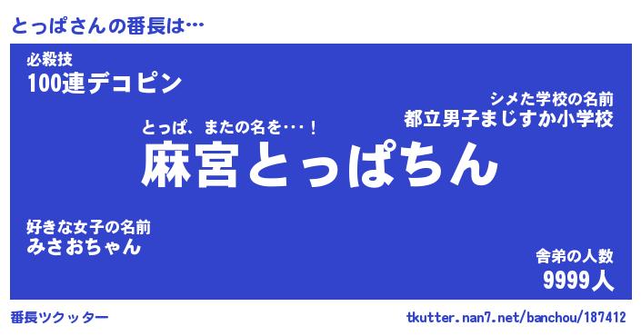 | ポケモン風あだ名 | 『トッチュウ』『トッパダネ』 |