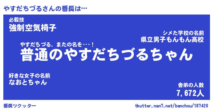 | ヒーロー風カッコイイあだ名 | 『スーパーヤスダチヅル』『黄金騎士ヤス』 |