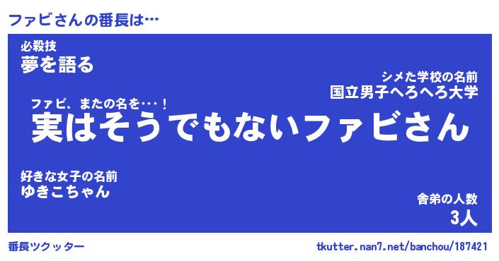| ヒーロー風カッコイイあだ名 | 『スーパーファビ』『ウルトラファビマン』 |
