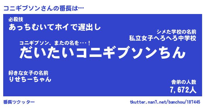 | 2回繰り返すあだ名 | 『コニコニ』『ココニニ』『ねちねち』 |