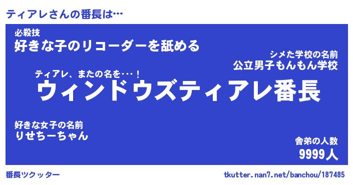 | ヘコむあだ名 | 『ティにゅー』『なまこ酢』『ティお』 |
