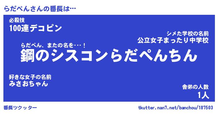 | ヘコむあだ名 | 『らだにゅー』『レバニラ』『らだお』 |
