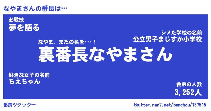 | ヒーロー風カッコイイあだ名 | 『スーパーナヤマ』『ウルトラなやまマン』 |