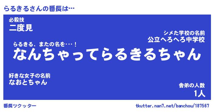 | 肩書あだ名 | 『らるきるCEO』『らるきる大統領』 |